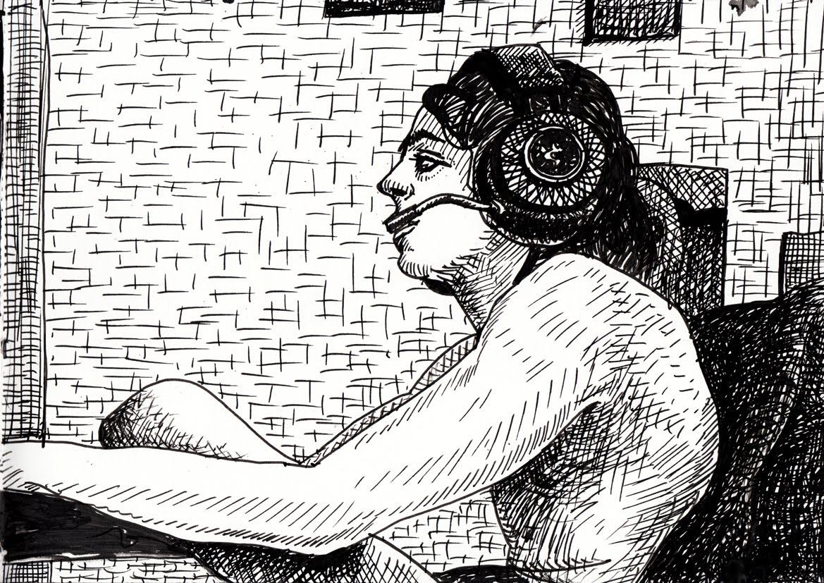 | Mère et enfant endormi - Encre - 21 x 59,4 cm Extrait des carnets juin 2019 - Hervé André |